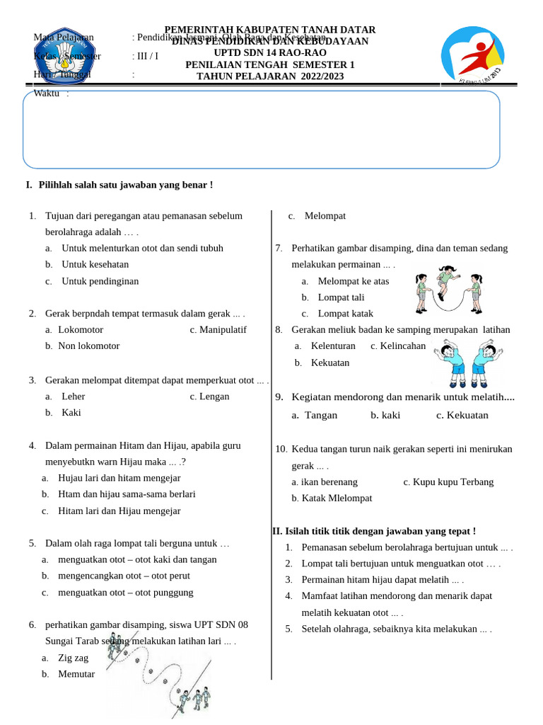 Berikut adalah kumpulan latihan soal yang dirancang untuk menguji pemahaman siswa Kelas 1 SD pada Tema 3 Subtema 2. Soal-soal ini mencakup berbagai jenis, mulai dari pilihan ganda, menjodohkan, hingga isian singkat, yang sesuai dengan kemampuan siswa di jenjang ini.