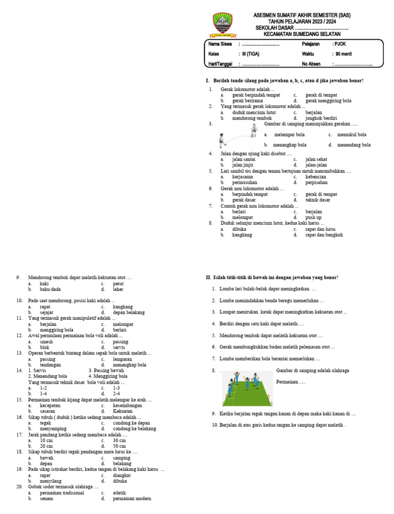 Berikut adalah kumpulan soal yang dirancang untuk mencakup berbagai mata pelajaran penting di kelas 3 SD, lengkap dengan kunci jawabannya.